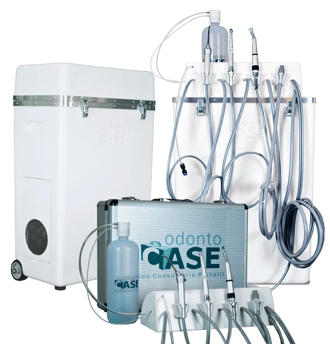 Equipamento Odontológico Portátil com Compressor de ar EMBUTIDO isento de óleo.